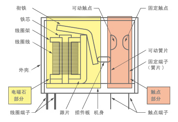 4.被吸引的衔铁接触铁芯后,衔铁会将传导性可动触点推挤入插件板。